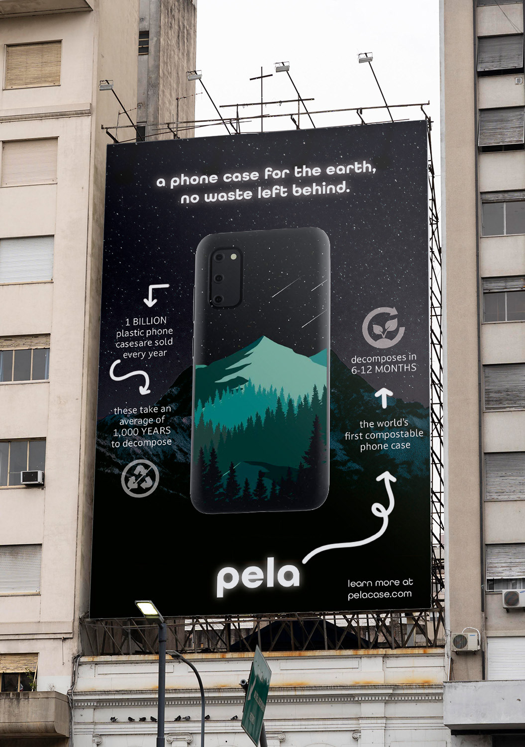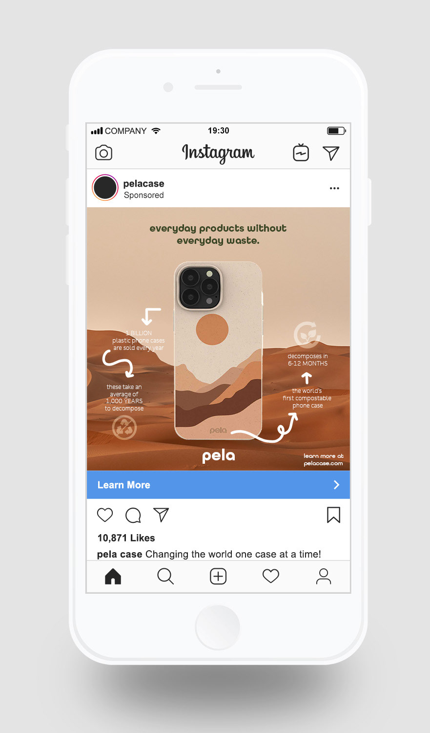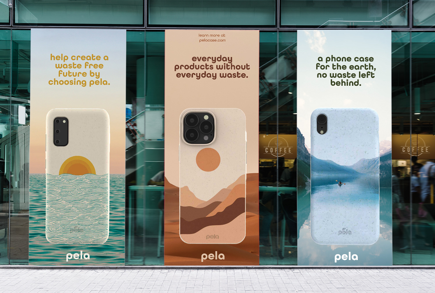 This project advertises phone cases from Pela, a sustainable brand, specifically highlighting their cases with imagery of nature to point back to Pela’s brand values and mission.